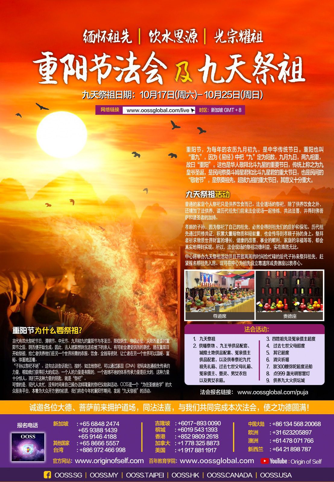 重阳节九天祭祖 (新马台)10月17日至10月25日 (农历九月初一至初九)