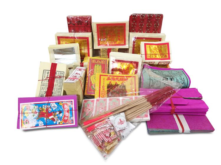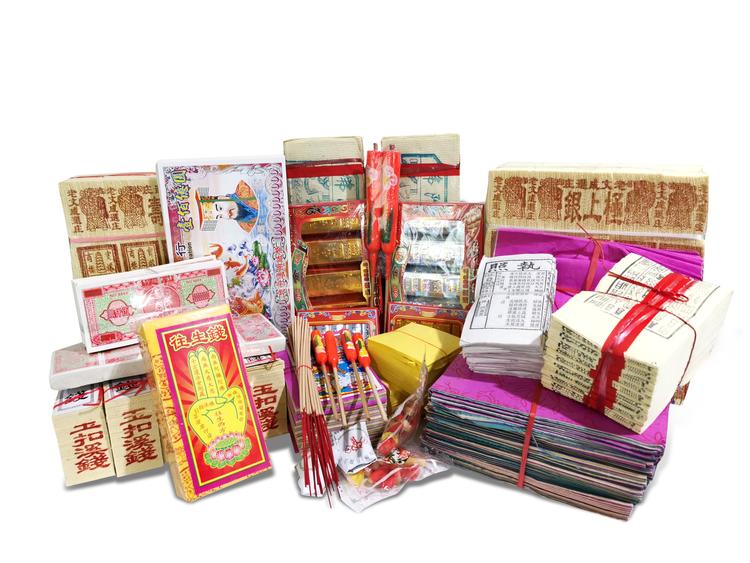 祭品里包括9盏灯和食物、法药、以及金银纸(上中下三界等系列)。