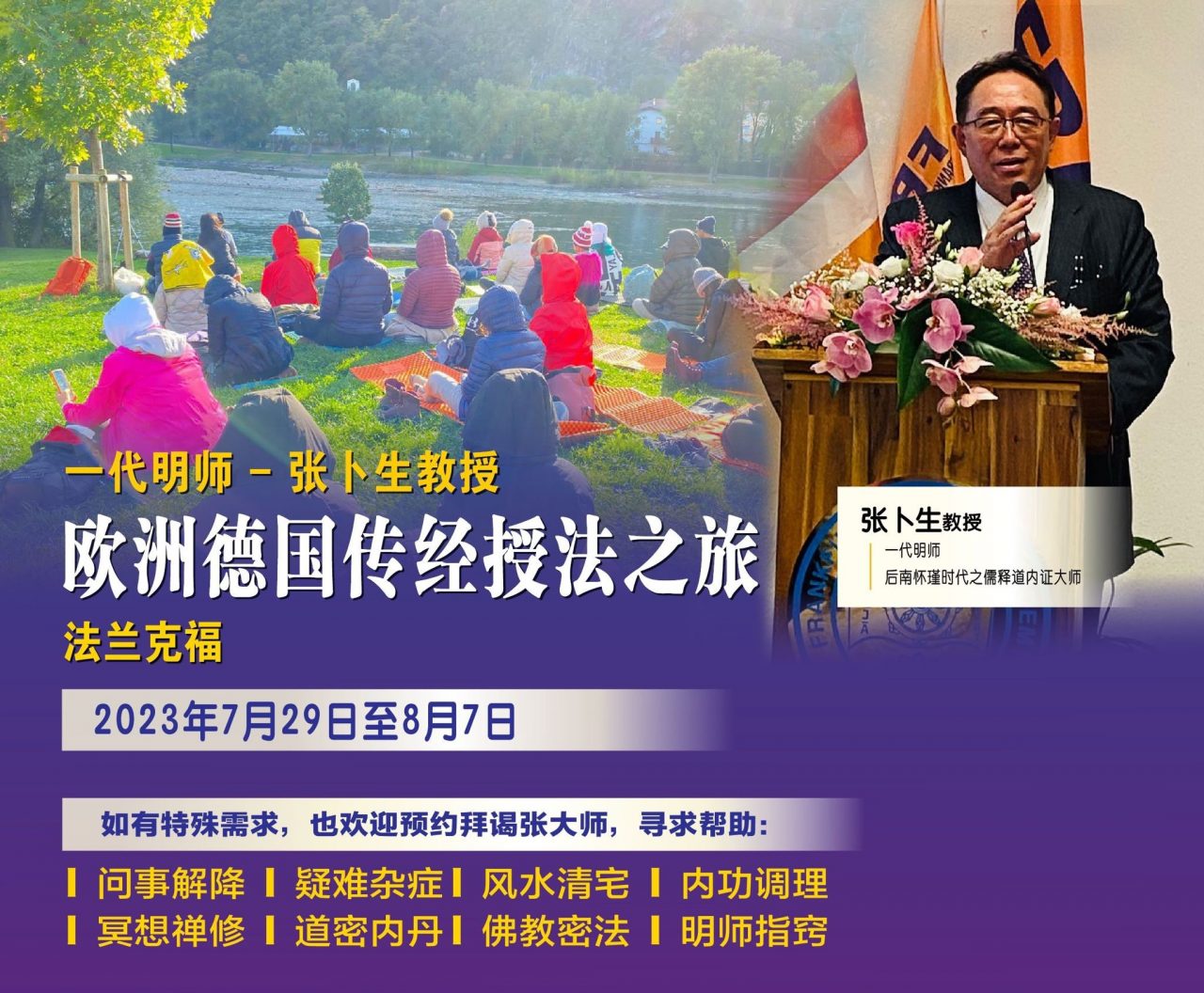 当代内证功夫,集神通与智慧于一身的大师——张卜生教授应欧洲德国的有缘大众的强烈邀请,将于 2023年7月29日至8月7日赴法兰克福弘法。