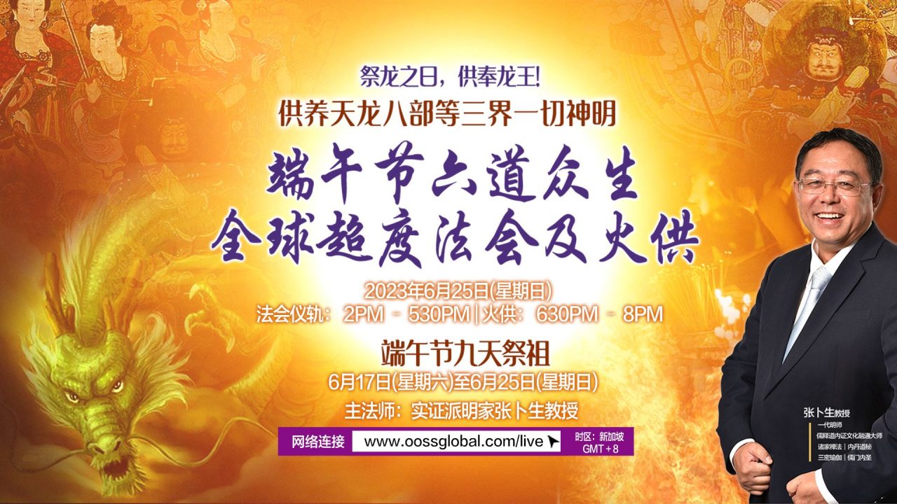 今年的端午节,我们利用特殊的时空,在初五共同奉神。在这龙升日的时空场,我们举办超度大法会及祭祖,饮水思源,缅怀祖德,并祈愿法界安宁,世界和平,人类和平共处,世界各国,风调雨顺,国泰民安,止息瘟疫和一切刀兵,消除一切灾难!