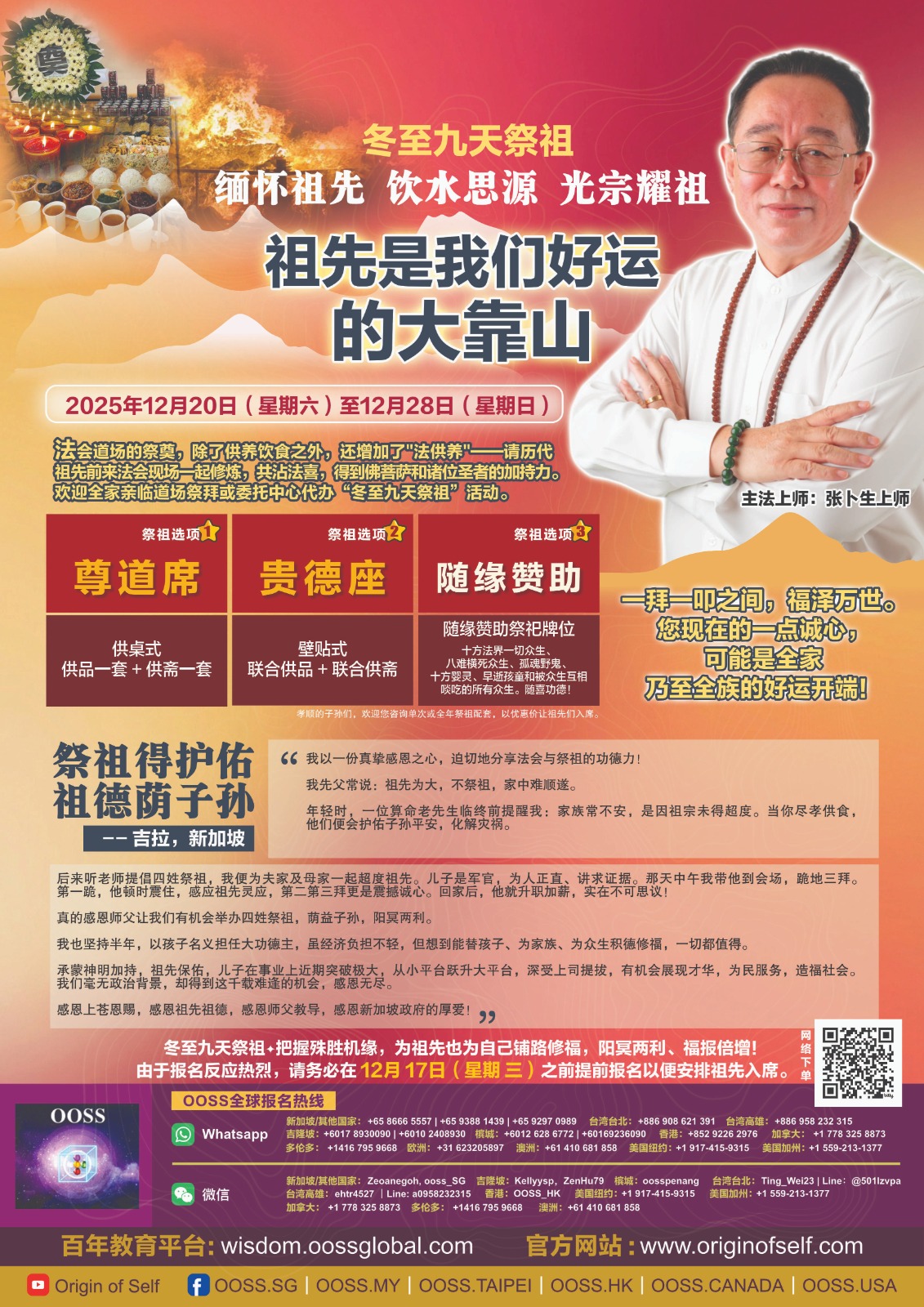 由于报名反应热烈,请务必在 12月 17日(星期 三)之前提前报名以便安排祖先入席。